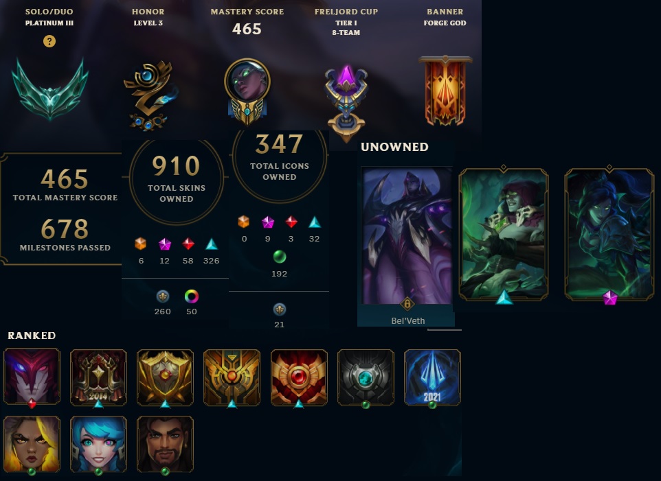 • Solo Queue Ranking: Platinum III